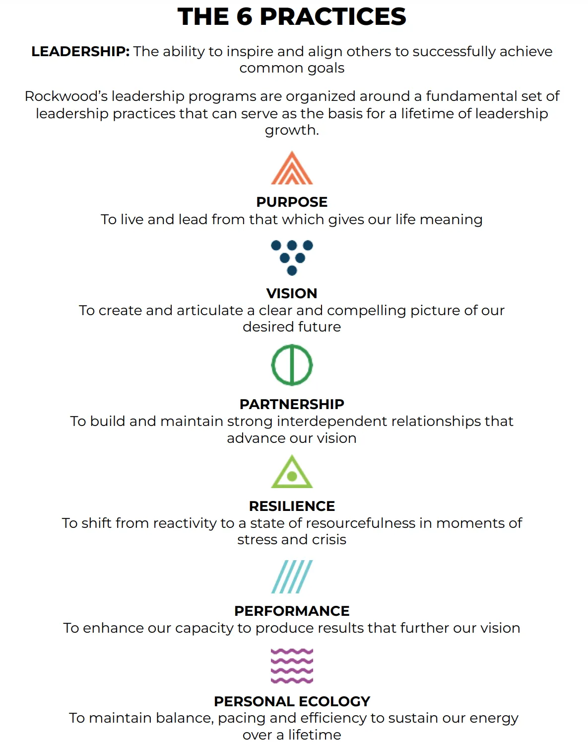 Rockwood's 6 Practices are the foundation we use to deepen, strengthen, and elicit new ways of being for today's movement leaders. Whether you are just beginning your coaching journey or are choosing to continue, at Rockwood, we teach coaching skills as a part of all of our trainings, and support you with a structure for peer coaching after trainings, as well. However, if you’re interested in additional support after a transformative retreat, or even just to develop a particular skill, capacity, or way of being, we invite you to consider connecting with one of our affiliate coaches.